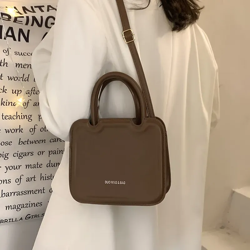 Women Fashionable Simple Solid Color Square Handle Shoulder Bag