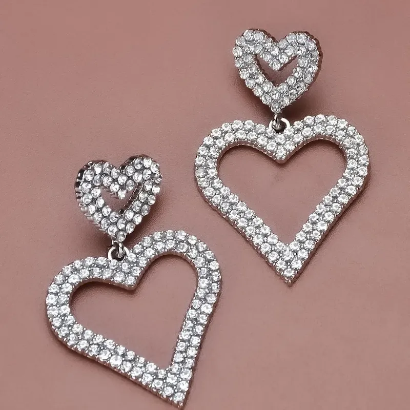 Wholesale Personalized Exaggerated Heart-Shaped Rhinestone Earrings