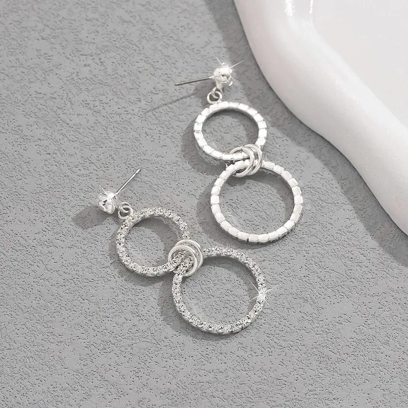 Wholesale Women Fashion Simple Rhinestone Circle Earrings
