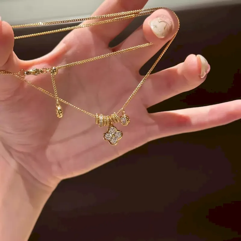 Wholesale Women Fashion Four-Leaf Flower Ring Pendant Necklace