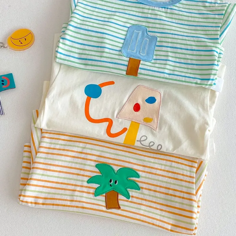 Wholesale Kids Baby Fashion Casual Solid Color Stripe Cotton Round Neck Short-Sleeve T-Shirt