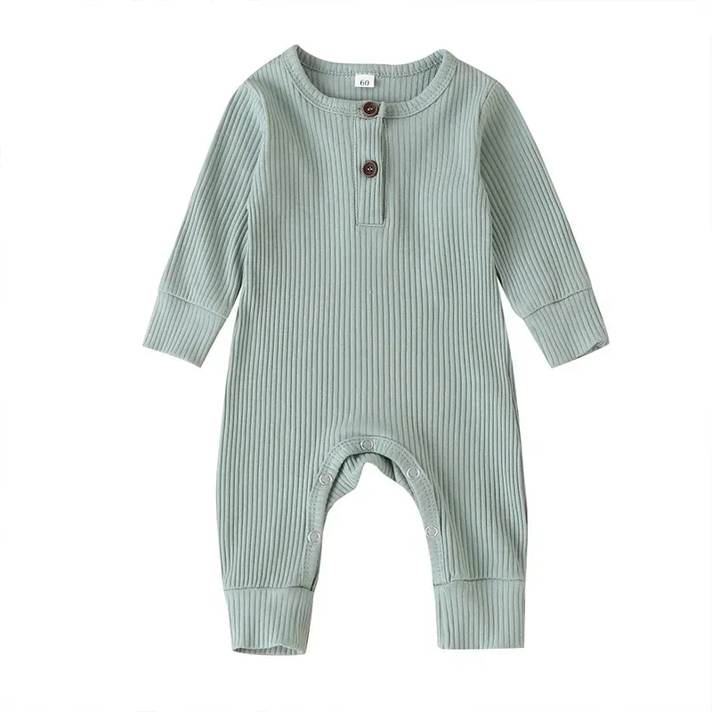 Wholesale Kids Baby’S Boys And Girls Autumn And Winter Solid Color Long-Sleeve Rompers