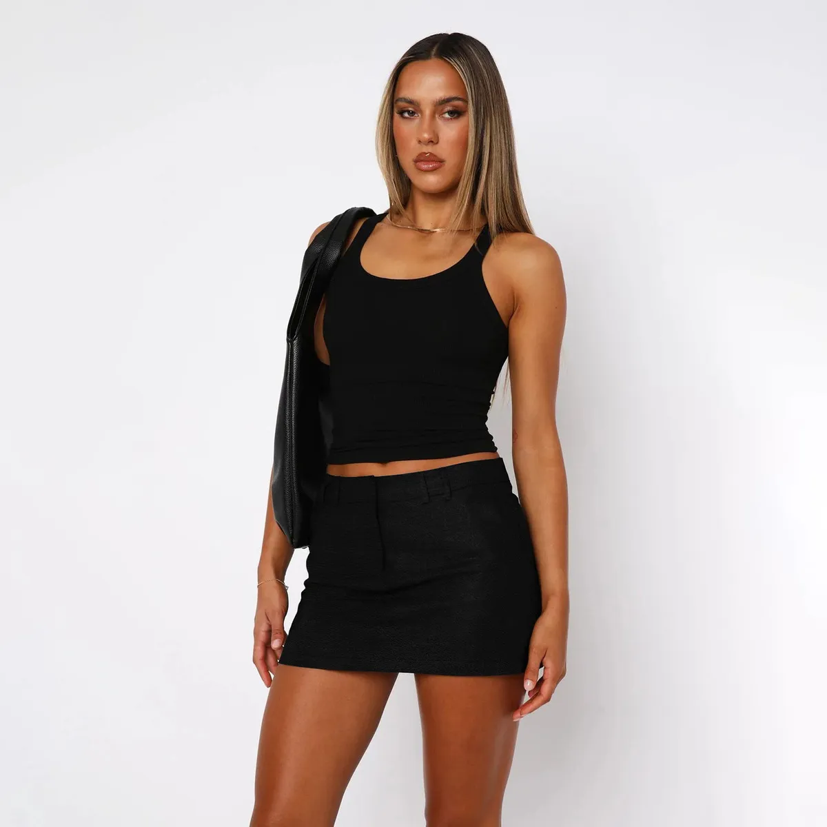 Women Fashion Casual Solid Color Low-Waist Drawstring Skirt