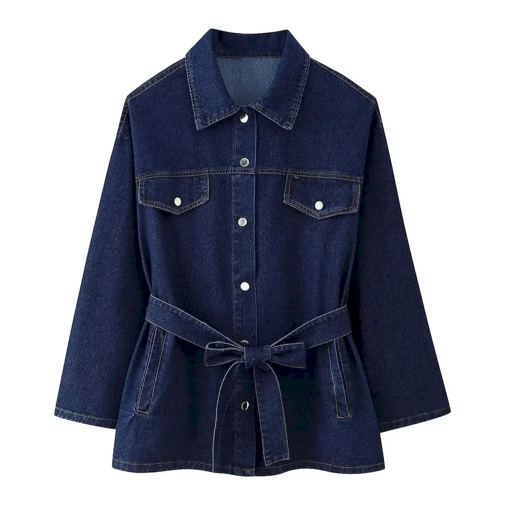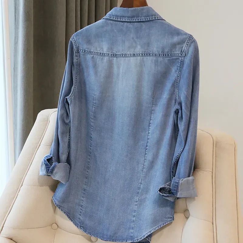 Women Fashion Casual Lapel Long-Sleeve Thin Loose Denim Coat