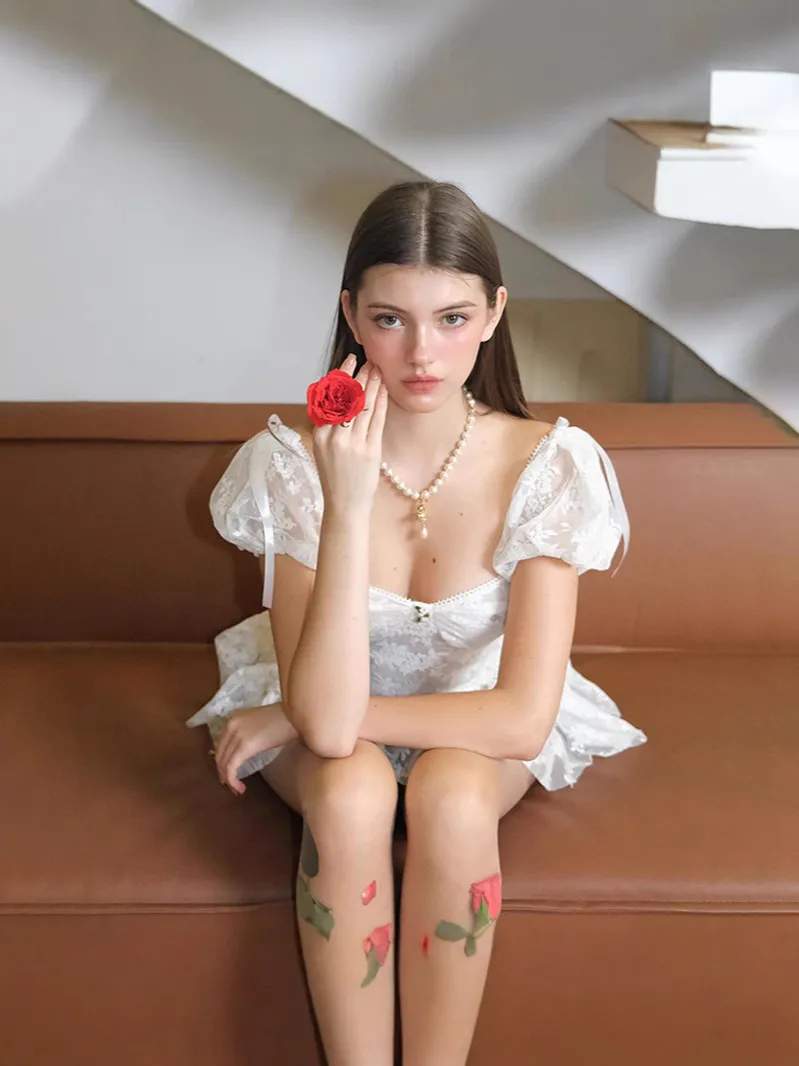 Women Fashion Sexy Mesh Tight Waist Bubble Short Sleeve Dress