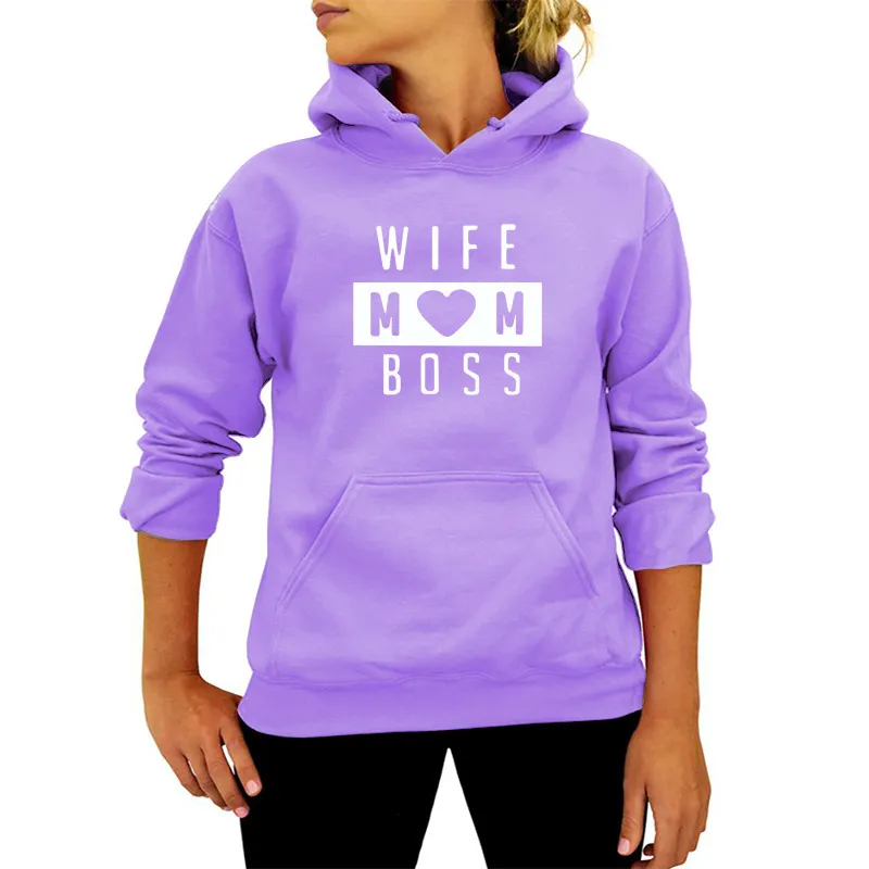Women Fashion Casual Solid Color Mom Letter Printed Hoodies