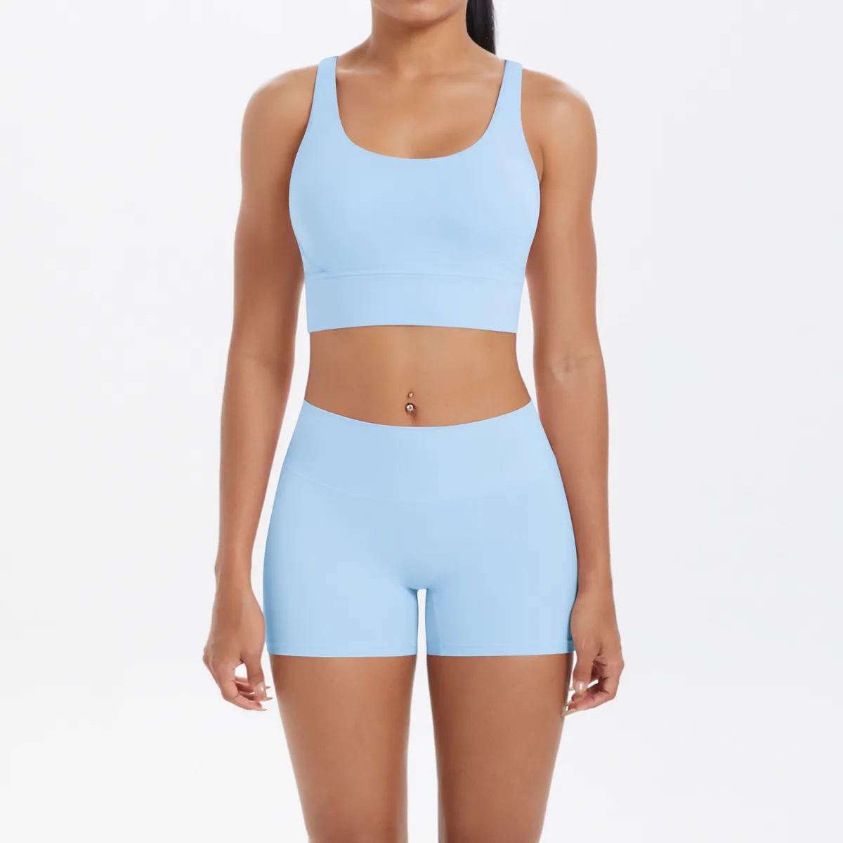 Women Fashion Casual Solid Color Tank Top Tight Shorts Yoga Sports Two-Piece Set