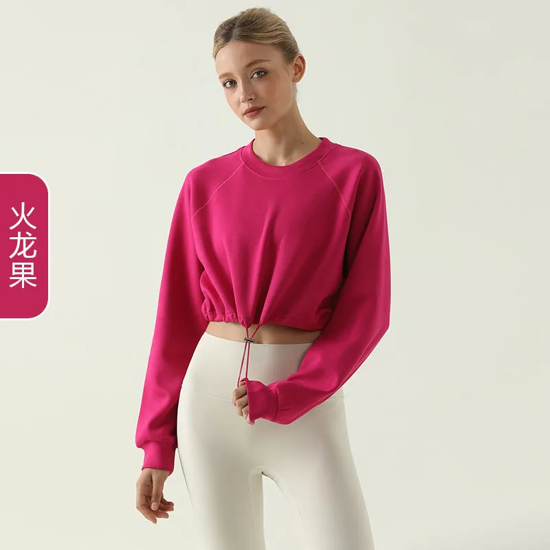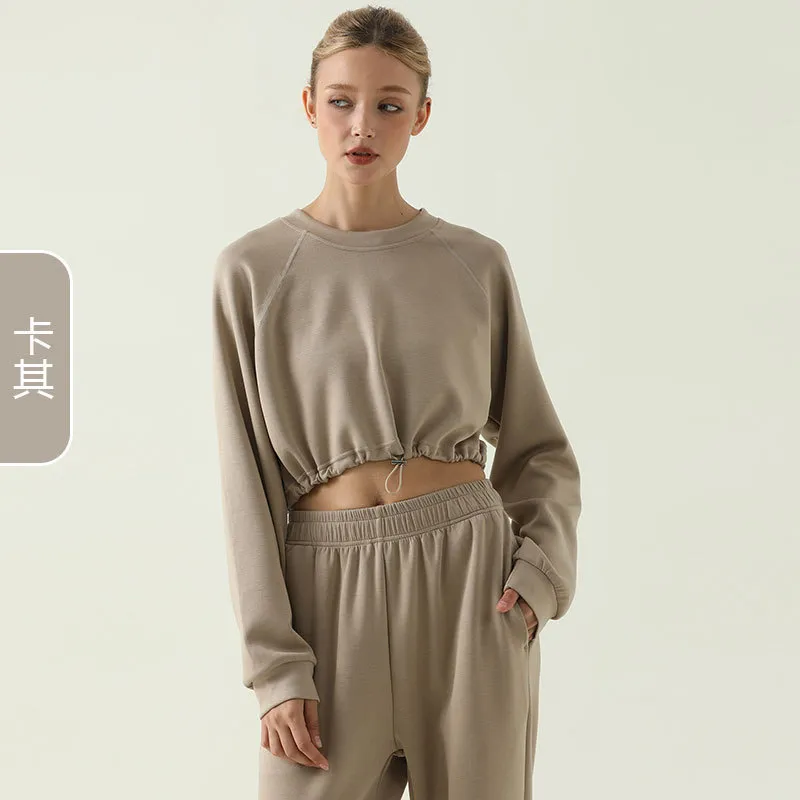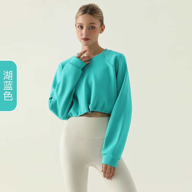 Autumn Winter Women Fashion Solid Color Drawstring Crewneck Long Sleeve Blank Sweatshirt – Premium Fashion Apparel for Modern Life