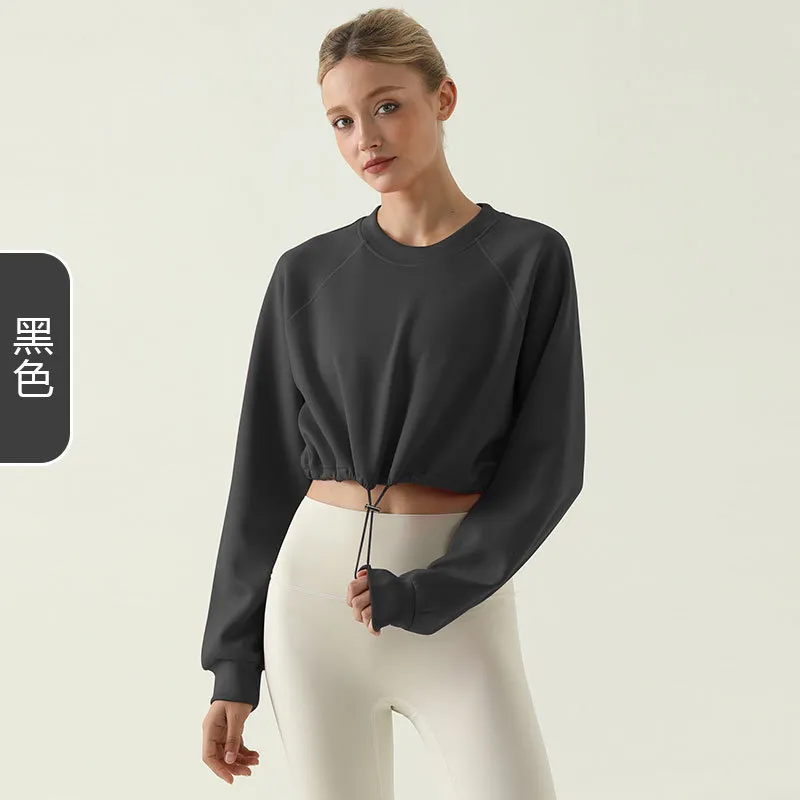 Autumn Winter Women Fashion Solid Color Drawstring Crewneck Long Sleeve Blank Sweatshirt