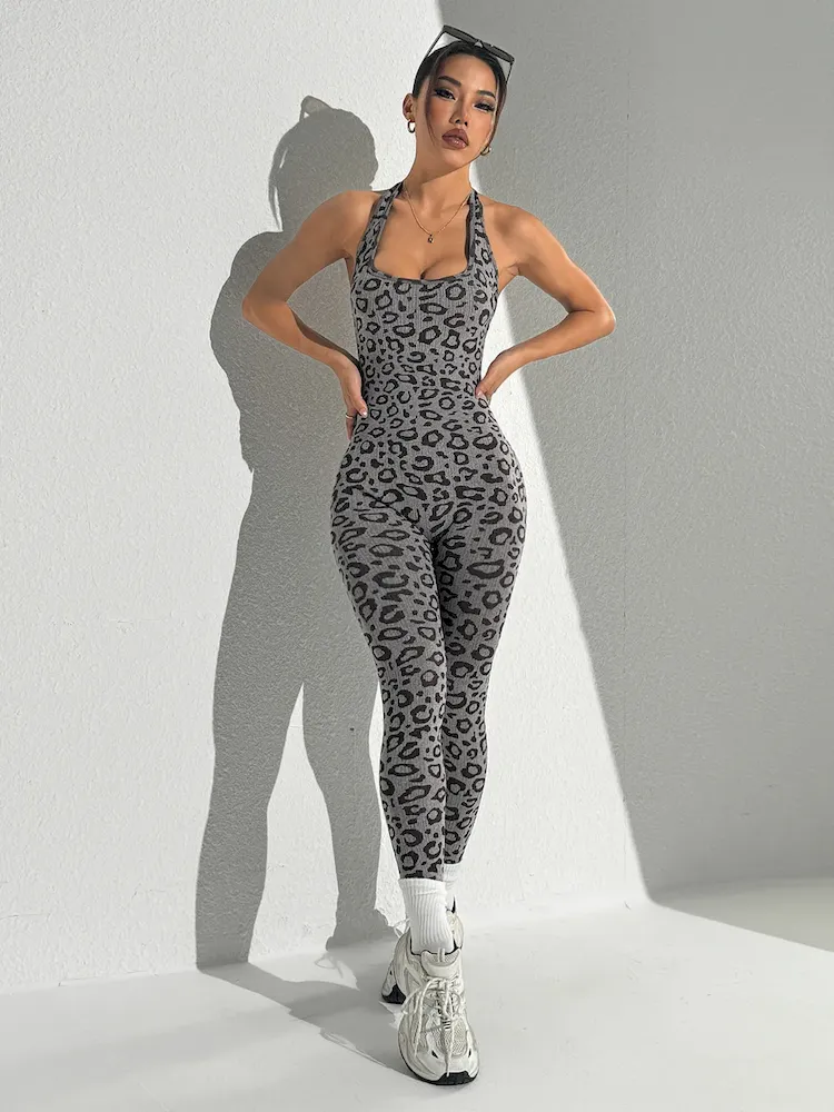 Seamless Leopard Printed Women Tight Halter Neck Yoga Sports Jumpsuits – Premium Fashion Apparel for Modern Life