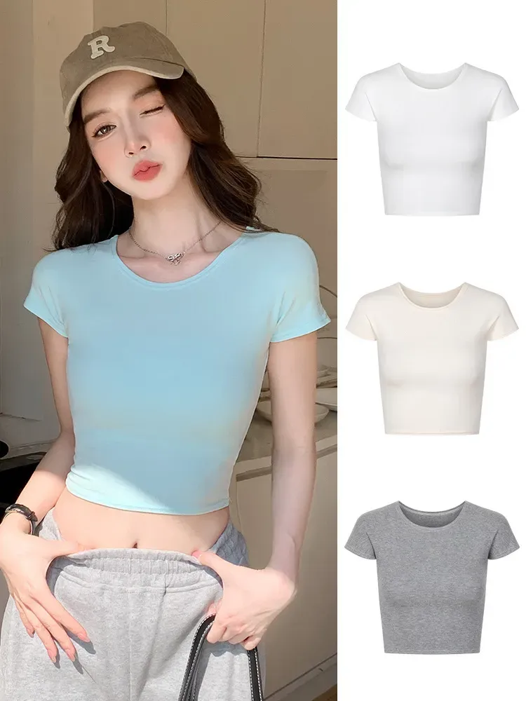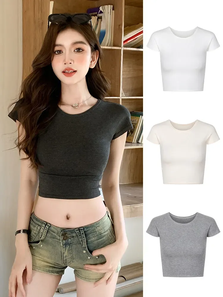 Slim-Fit Crop Top Women Basic Summer Short-Sleeved Casual Short T-Shirt