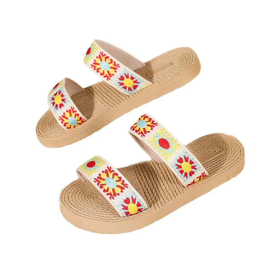 Summer Women Boho Ethnic Vintage Floral Flat Slippers