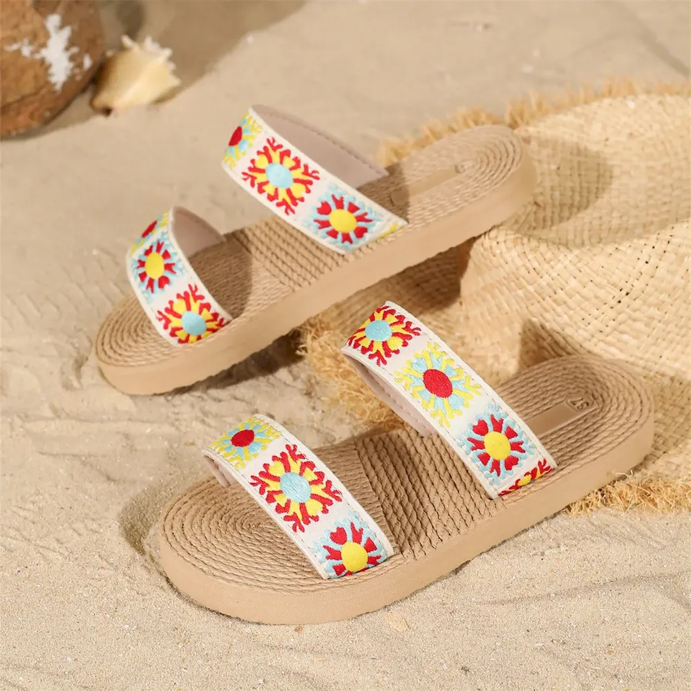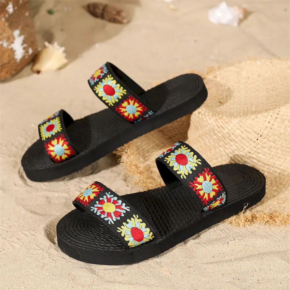 Summer Women Boho Ethnic Vintage Floral Flat Slippers – Premium Fashion Apparel for Modern Life