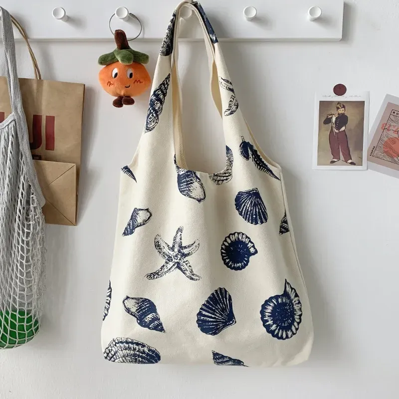 Summer Women Casual Leaf Flower Print Large Capacity Canvas Tote Bag
