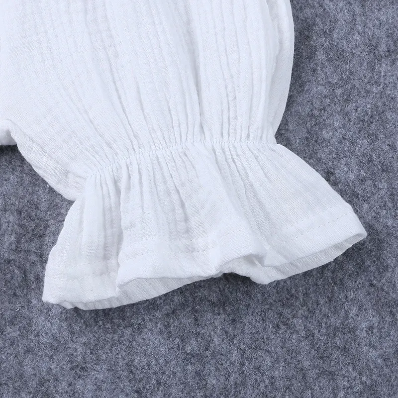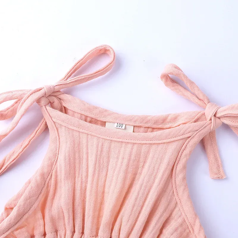 Wholesale Kids Girls Fashion Elegant Solid Color Lace Embroidered Lapel Short-Sleeve Lace-Up Dress