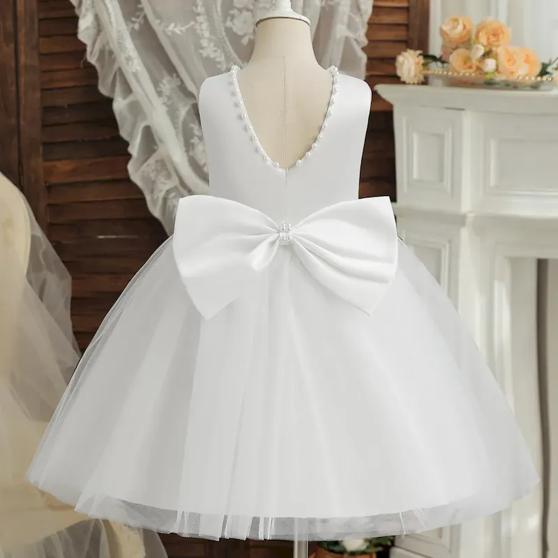 Wholesale Kids Girls Fashion Elegant Flower Bowknot Mesh Sleeveless Party Dress