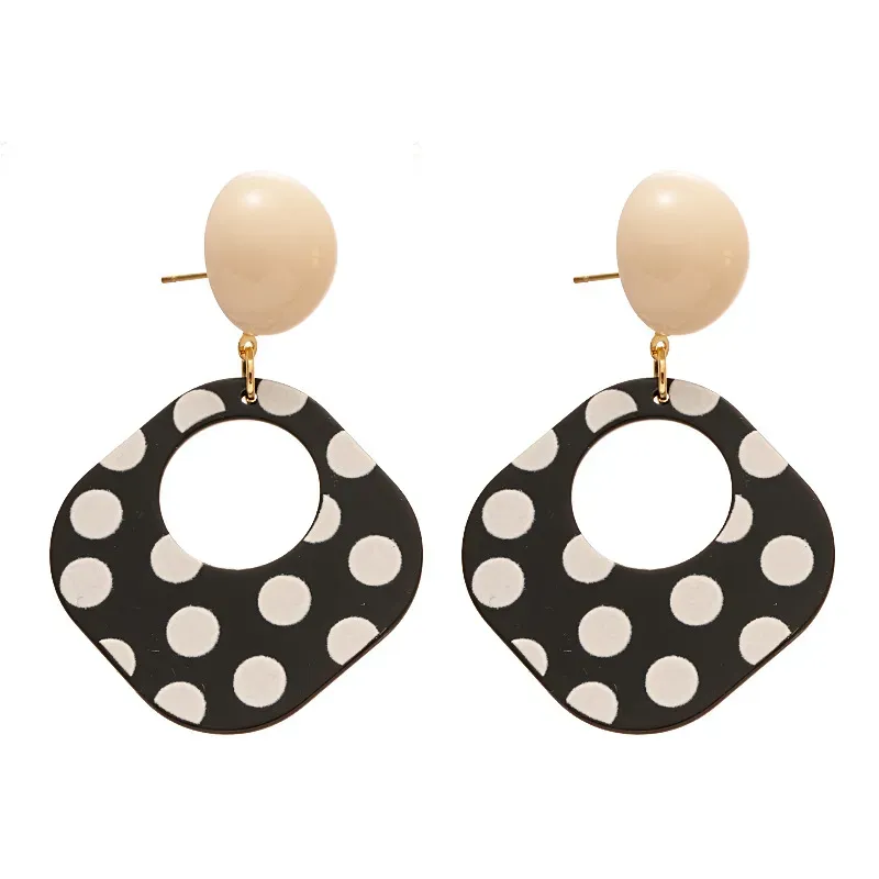 | Color | Silver Needle-Black Square Dot Drop Earrings, Silver Needle-White Square Dot Drop Earrings |