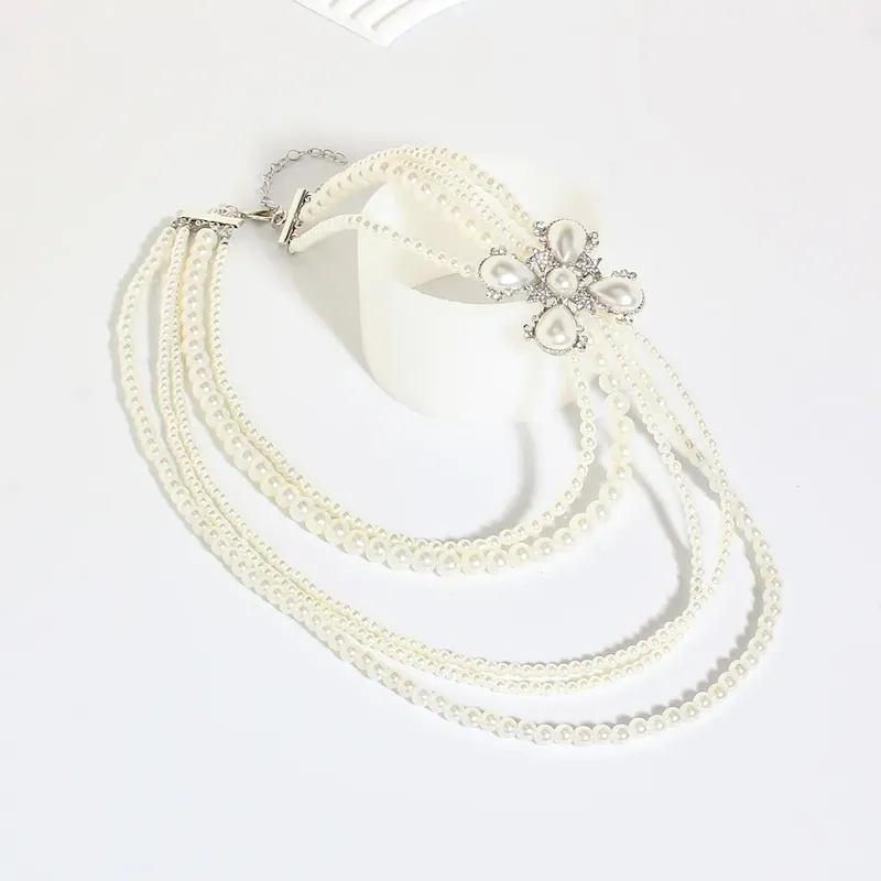 Wholesale Women Retro Elegant Multi-Layer Imitation Pearl Long Necklace