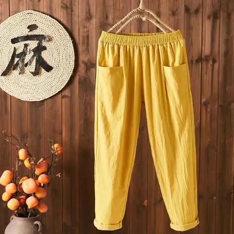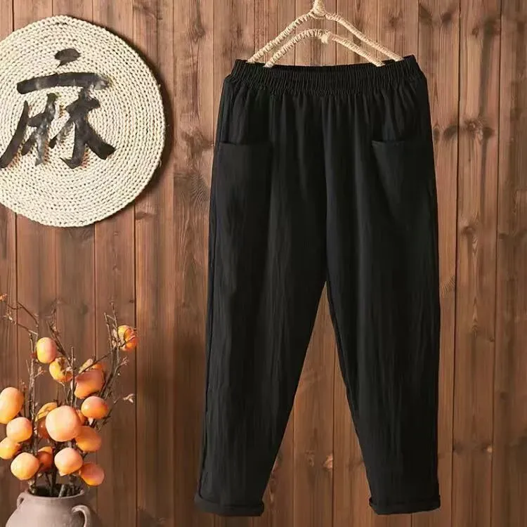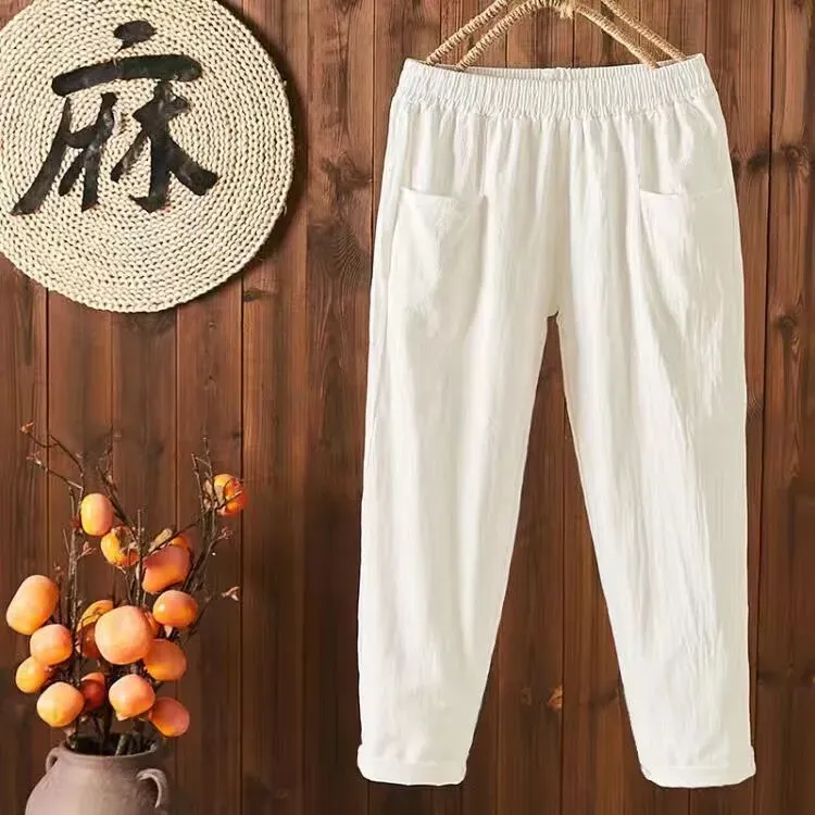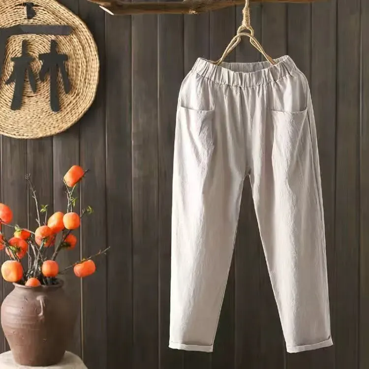 Women Casual Solid Color Cotton Linen Cropped Pants – Premium Fashion Apparel for Modern Life