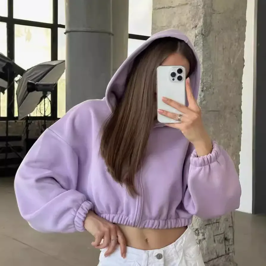 Women Casual Solid Color Long Sleeve Zipper Hoodies – Premium Fashion Apparel for Modern Life