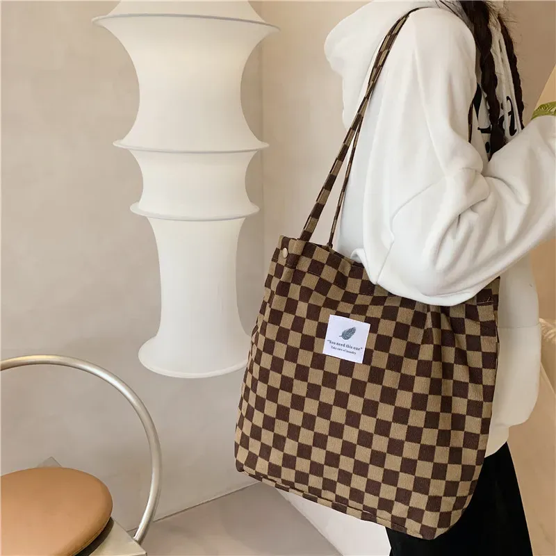 Women Casual Vintage Plaid Pattern Large Capacity Canvas Tote Bag – Premium Fashion Apparel for Modern Life