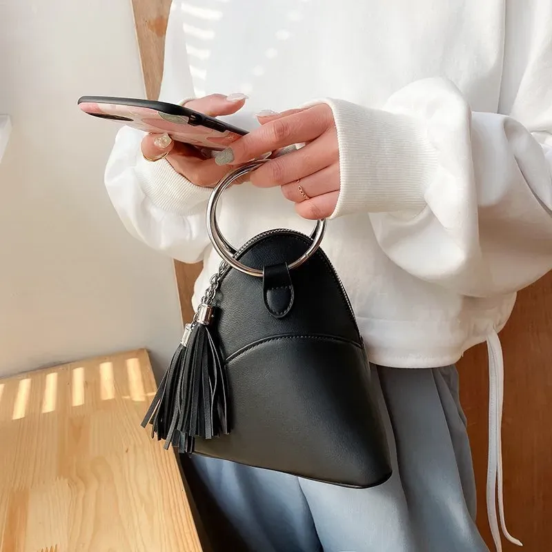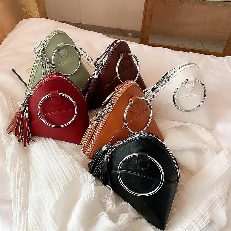 Women Creative Tassel Hoop Decoration Triangle Shape PU Handle Bag – Premium Fashion Apparel for Modern Life