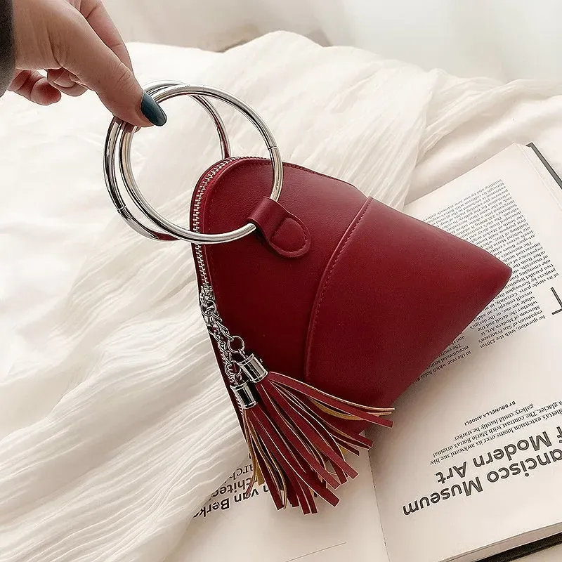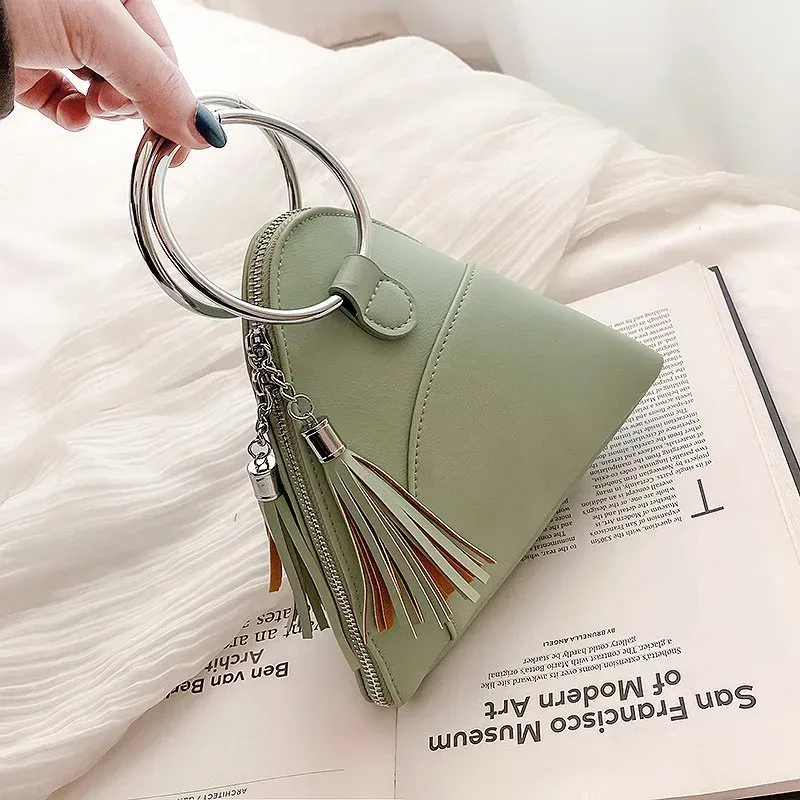 Women Creative Tassel Hoop Decoration Triangle Shape PU Handle Bag