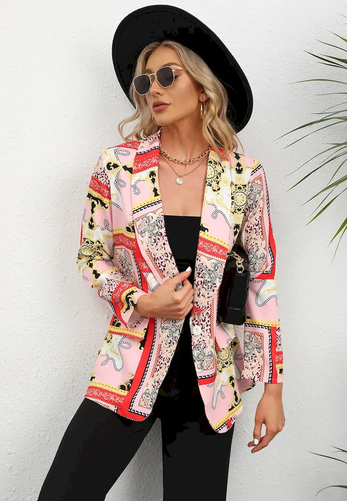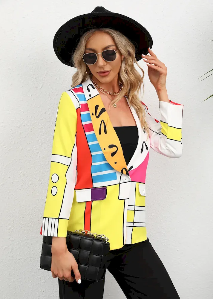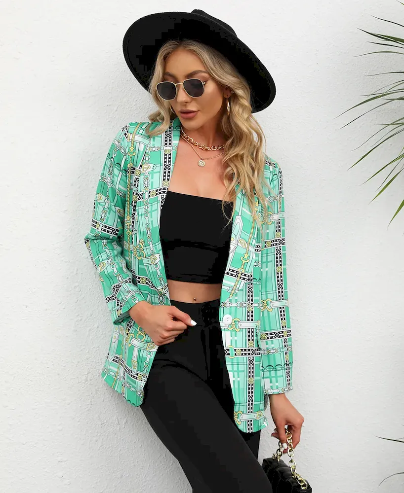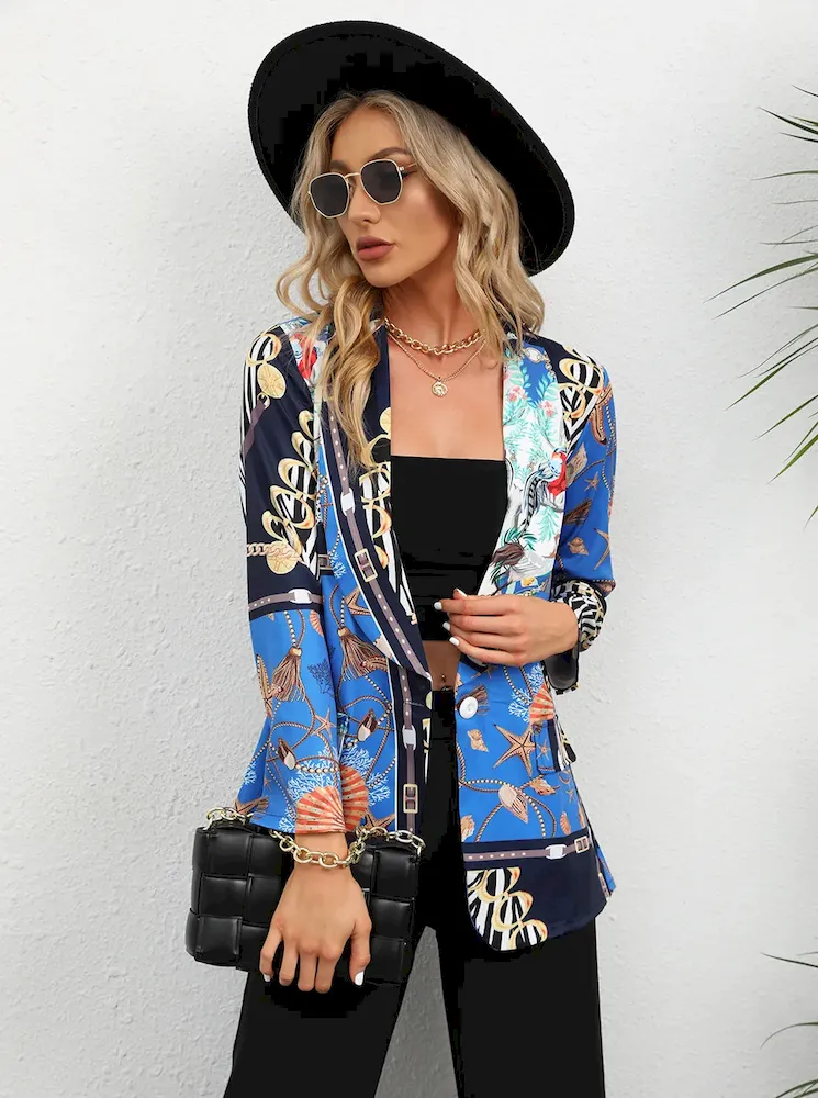 Women Fashion Casual Plaid Starfish Print Lasel Button Long Sleeve Coat – Premium Fashion Apparel for Modern Life