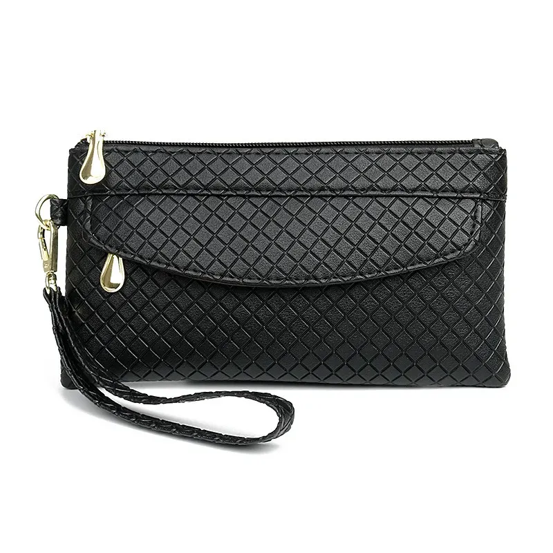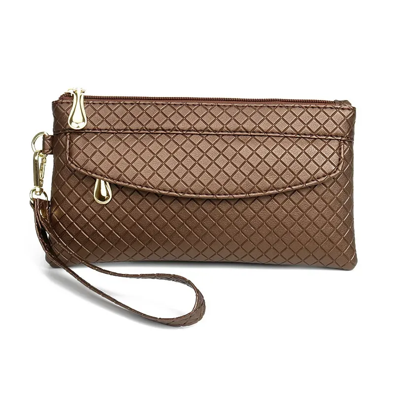 Women Fashion Casual Plaid Zipper Long Purses