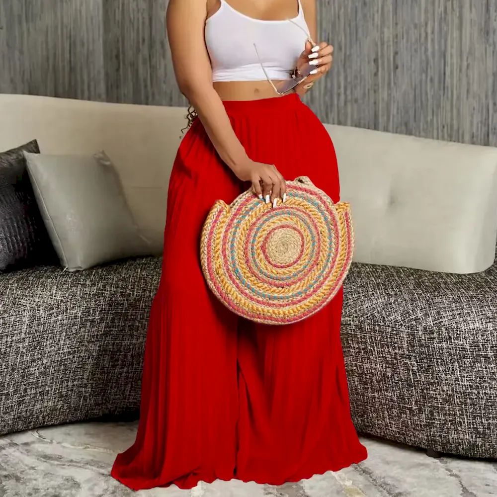 Women Fashion Casual Solid Color Pleated High Waist Wide Leg Pants – Premium Fashion Apparel for Modern Life