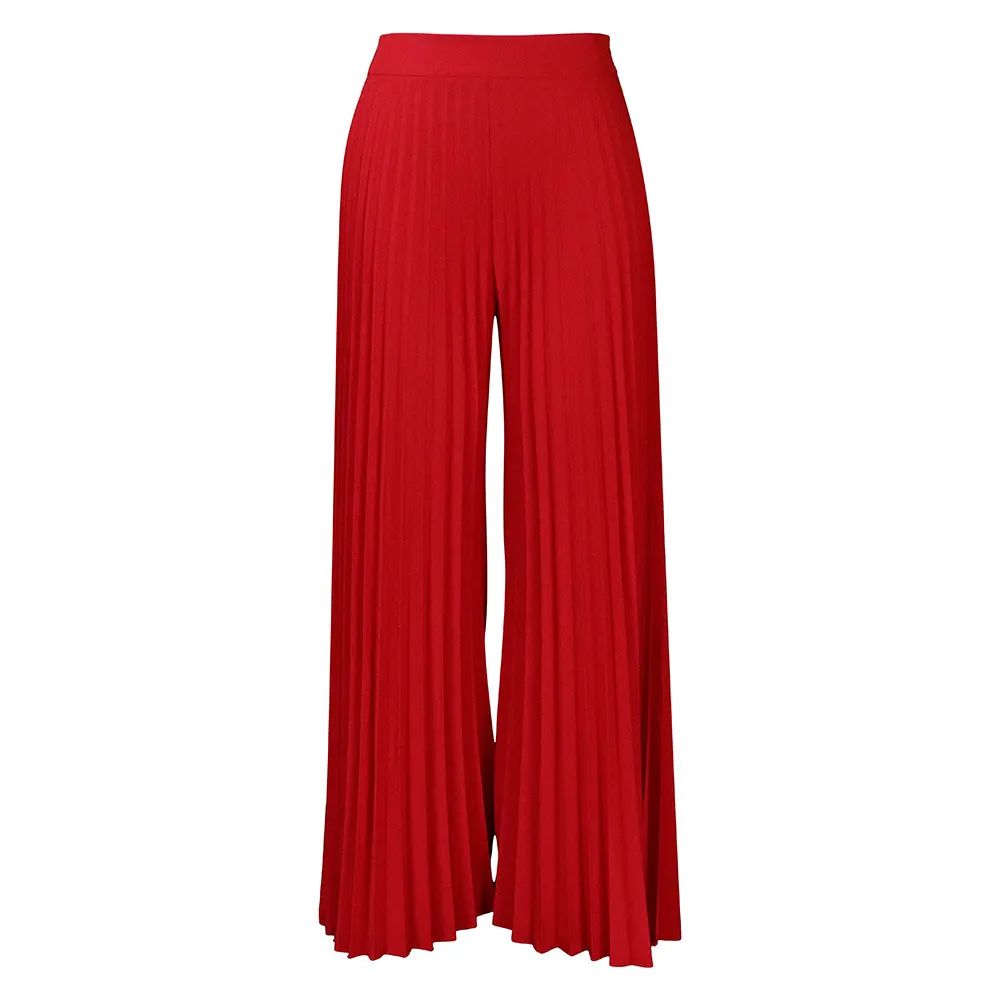 Women Fashion Casual Solid Color Pleated High Waist Wide Leg Pants