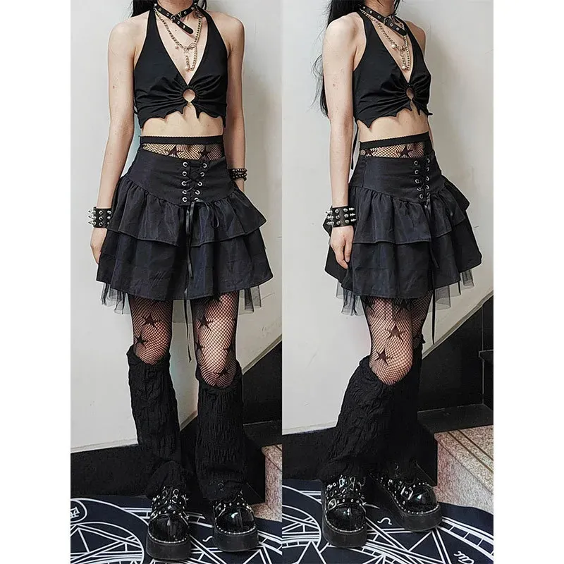 Women Fashion Dark Gothic Mesh Stitching High Waist Skirt – Premium Fashion Apparel for Modern Life