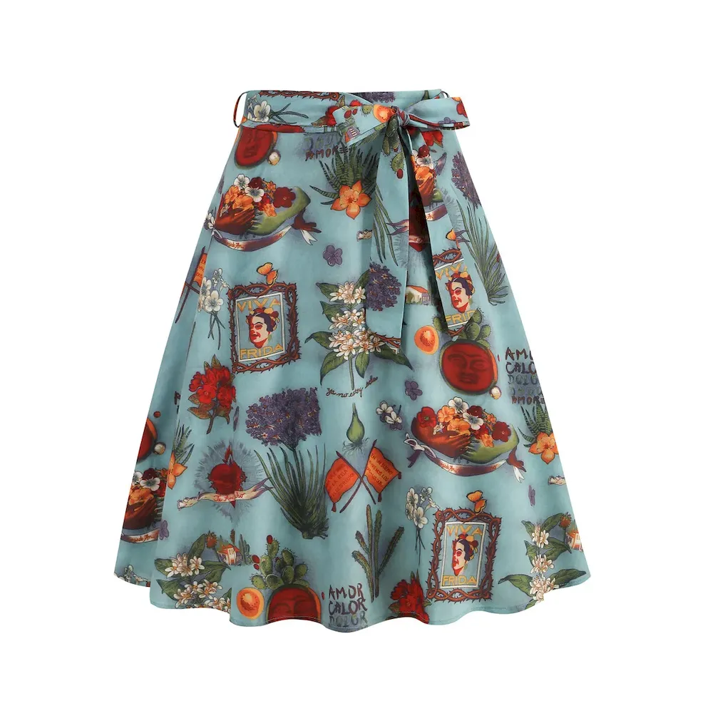 Women Fashion Graffiti Printed Lace-Up Bowknot Tight A- Line Skirt – Premium Fashion Apparel for Modern Life