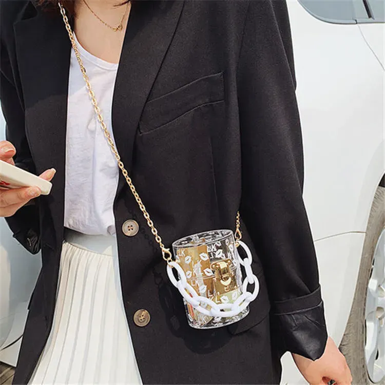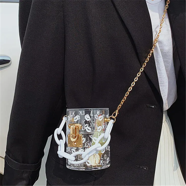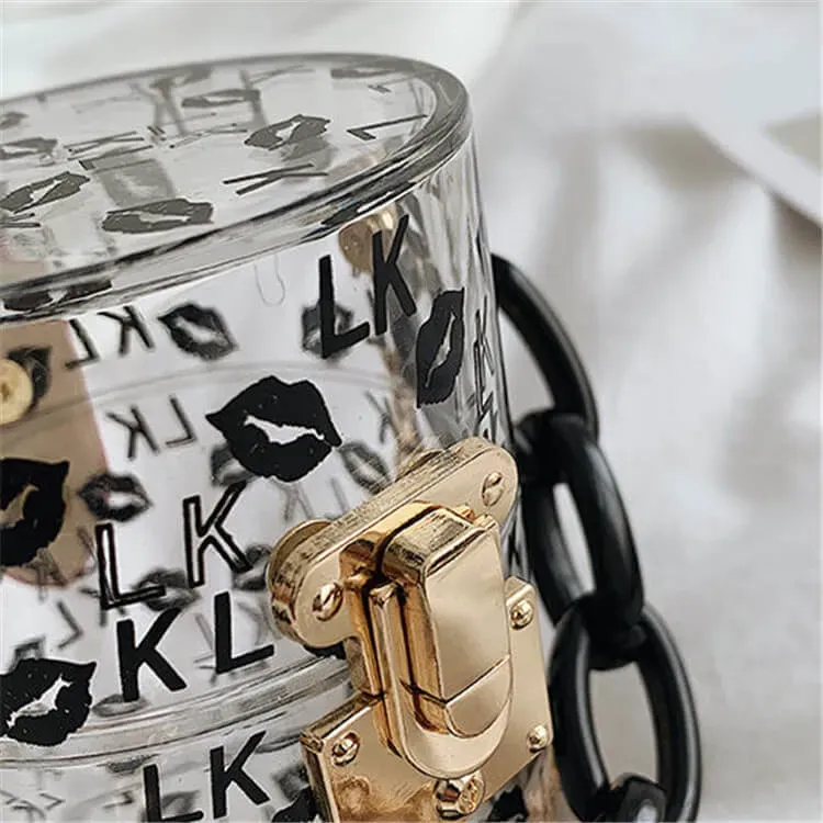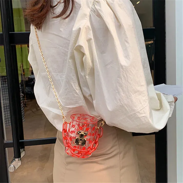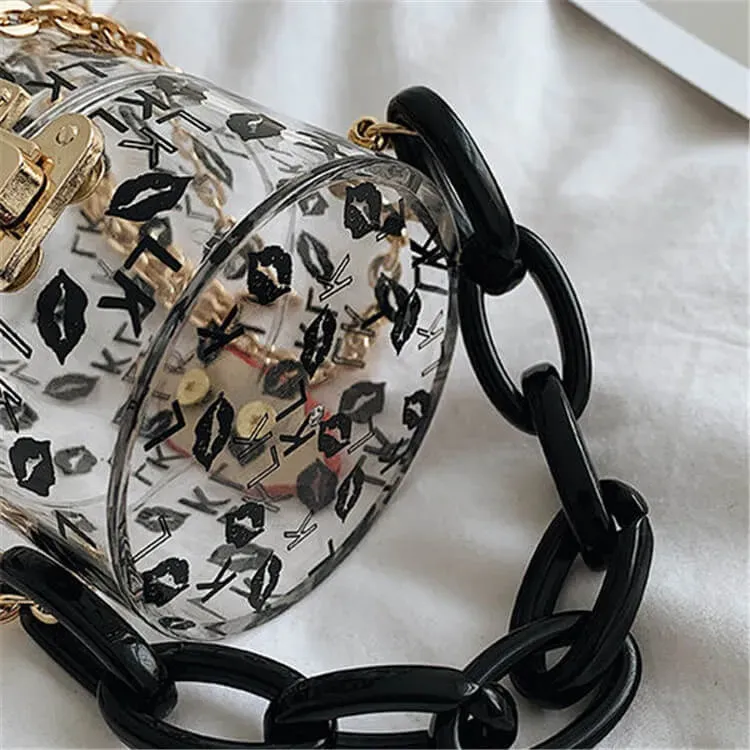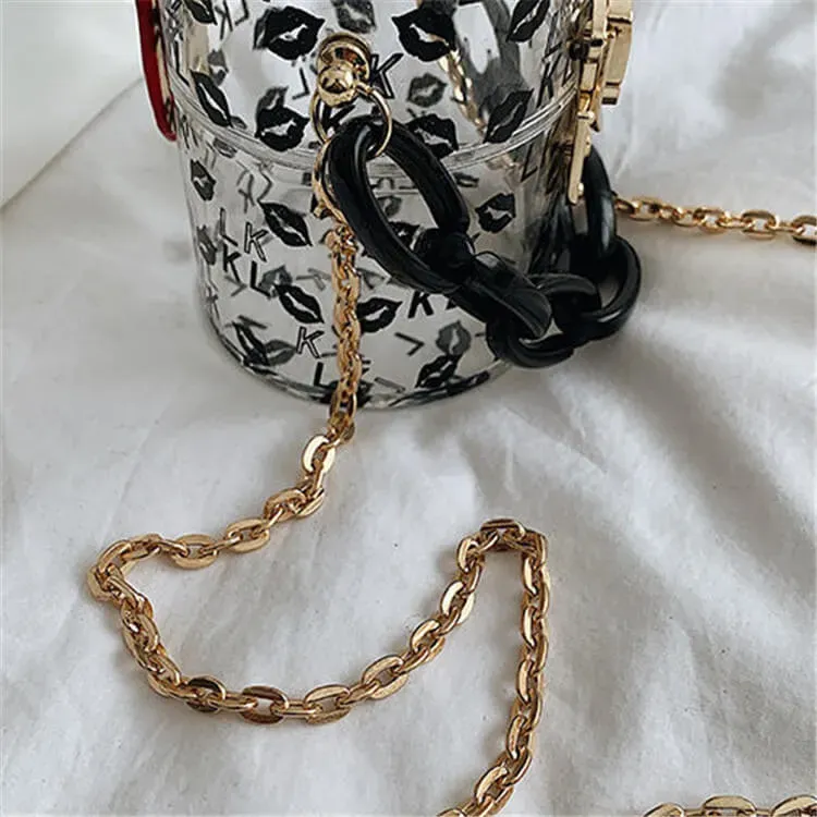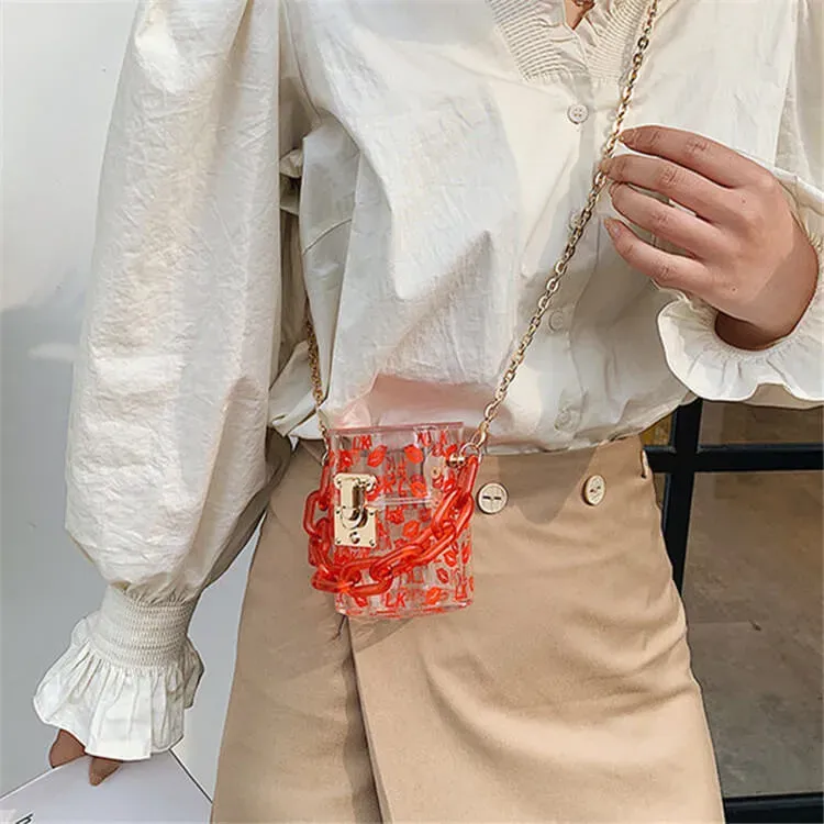 Women Fashion Lip Print Chunky Chain Crossbody Bag