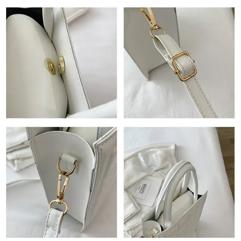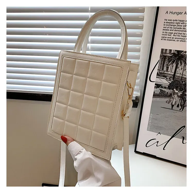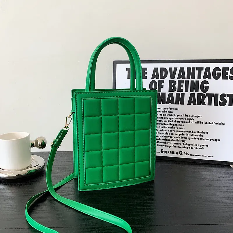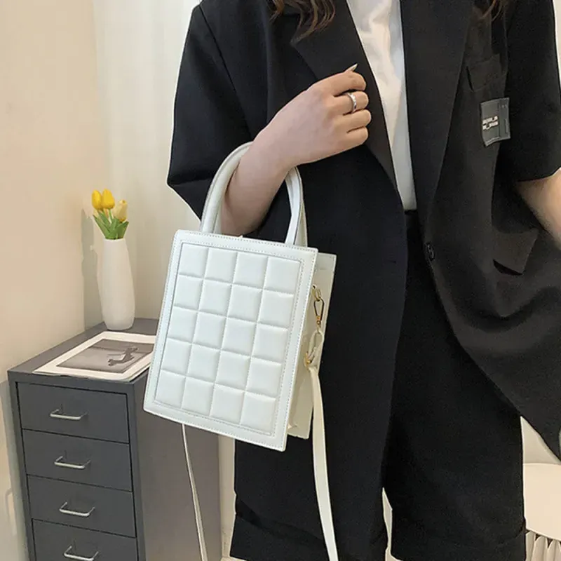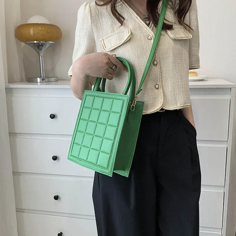 Women Fashion Plaid Embossed Solid Color Large Capacity PU Crossbody Bag – Premium Fashion Apparel for Modern Life