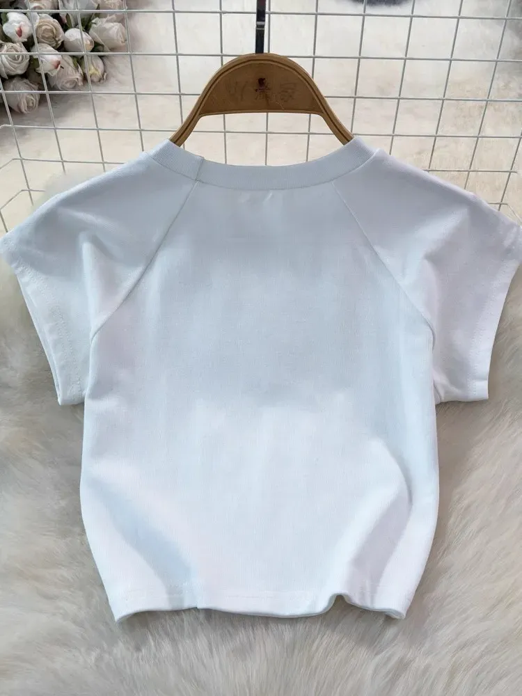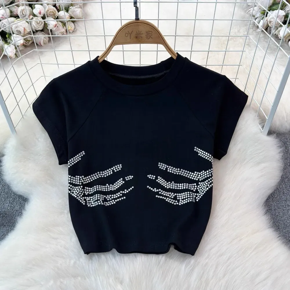 Women Fashion Sexy Magic Claw Rhinestone Printed Short-Sleeve T-Shirt