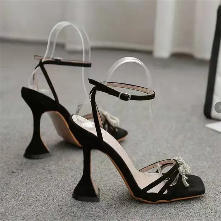 Women Fashion Sexy Rhinestone Bowknot Square Toe High Heel Shoes – Premium Fashion Apparel for Modern Life