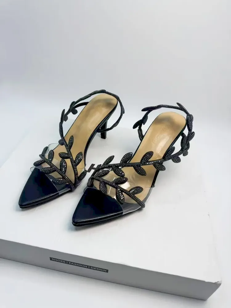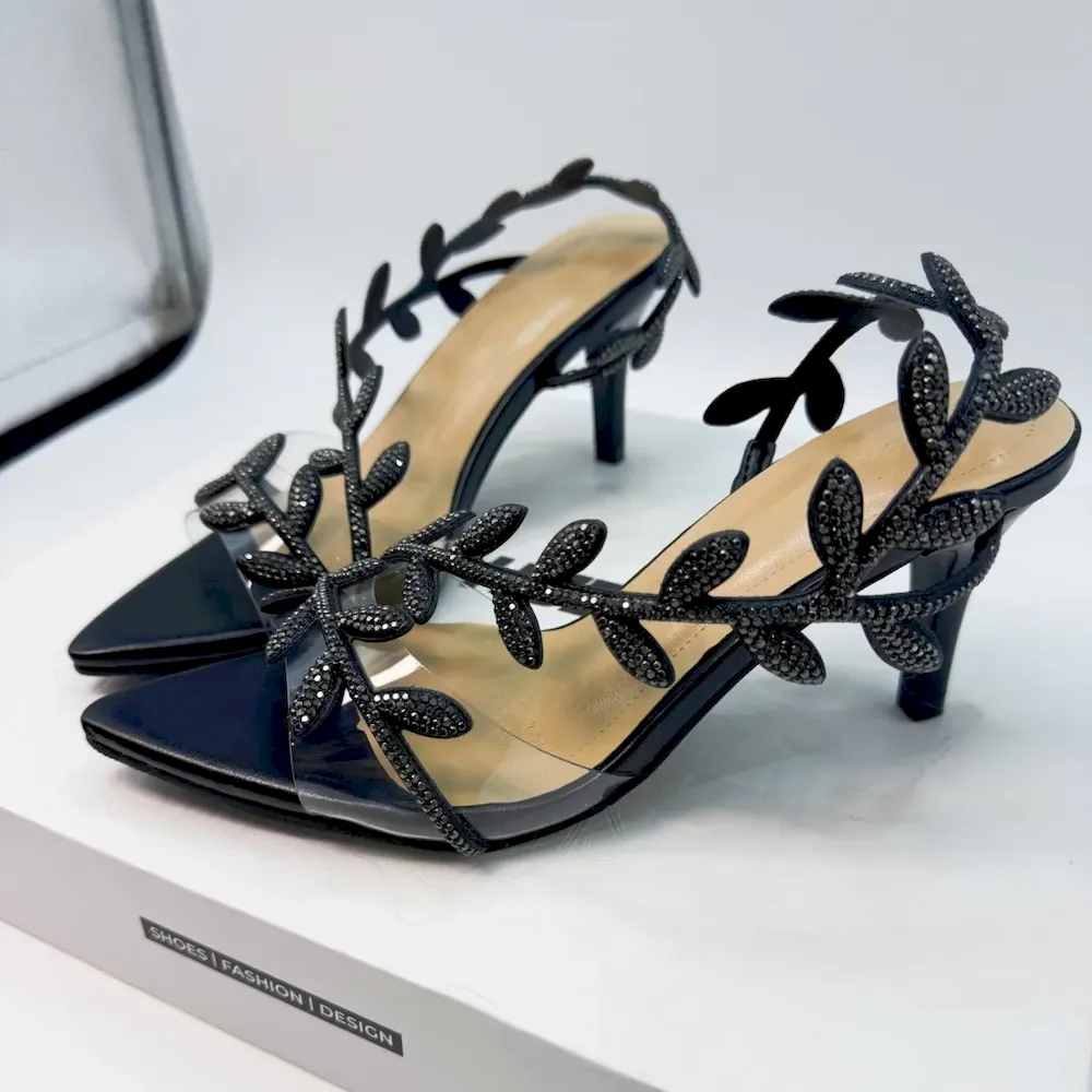 Women Fashion Sexy Rhinestone Leaves Pointed Toe Thin High Heels – Premium Fashion Apparel for Modern Life