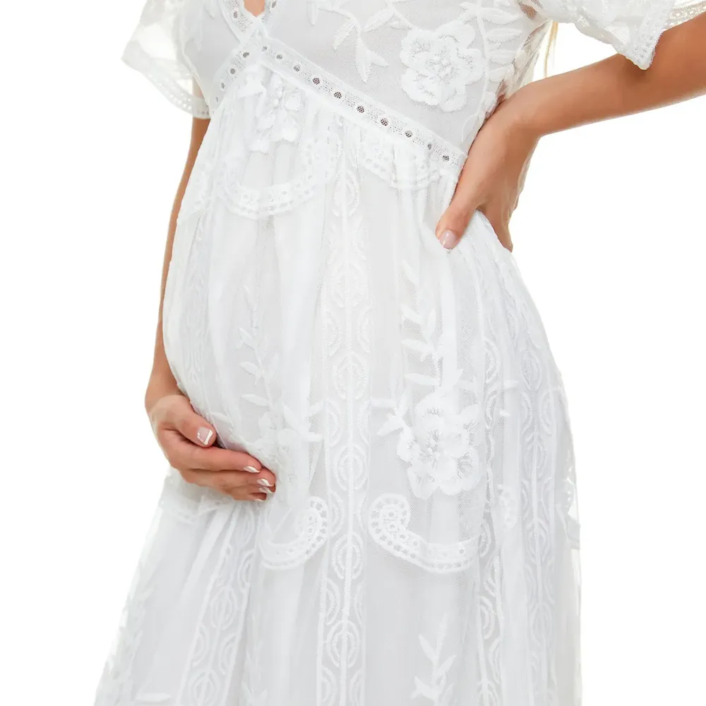Women Fashion Solid Color Lace Pregnant Women Dress – Premium Fashion Apparel for Modern Life