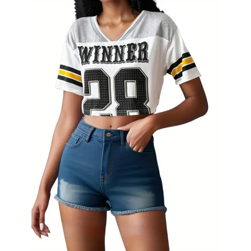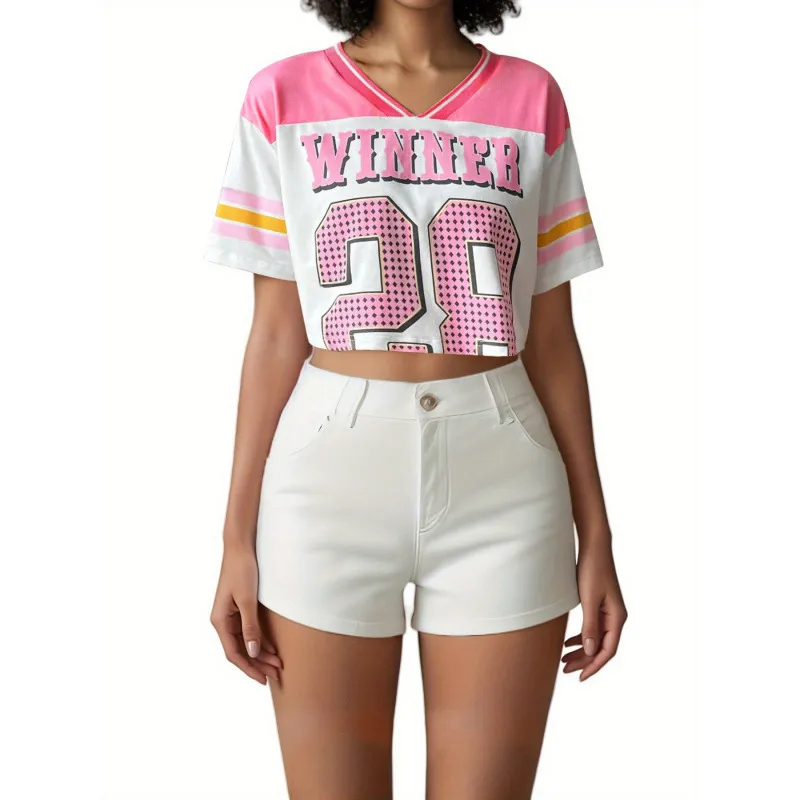 Women Loose Short-Sleeved Crewneck Casual Jersey Top Football Sports T-Shirt – Premium Fashion Apparel for Modern Life