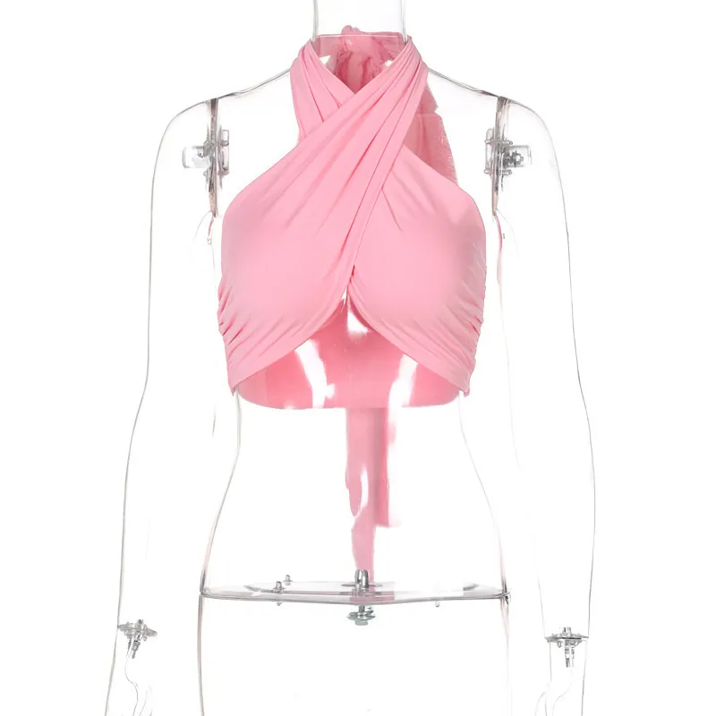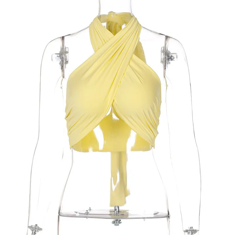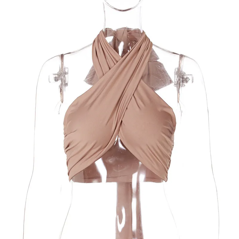 Women Sexy Halter Neck Solid Color Crop Top – Premium Fashion Apparel for Modern Life