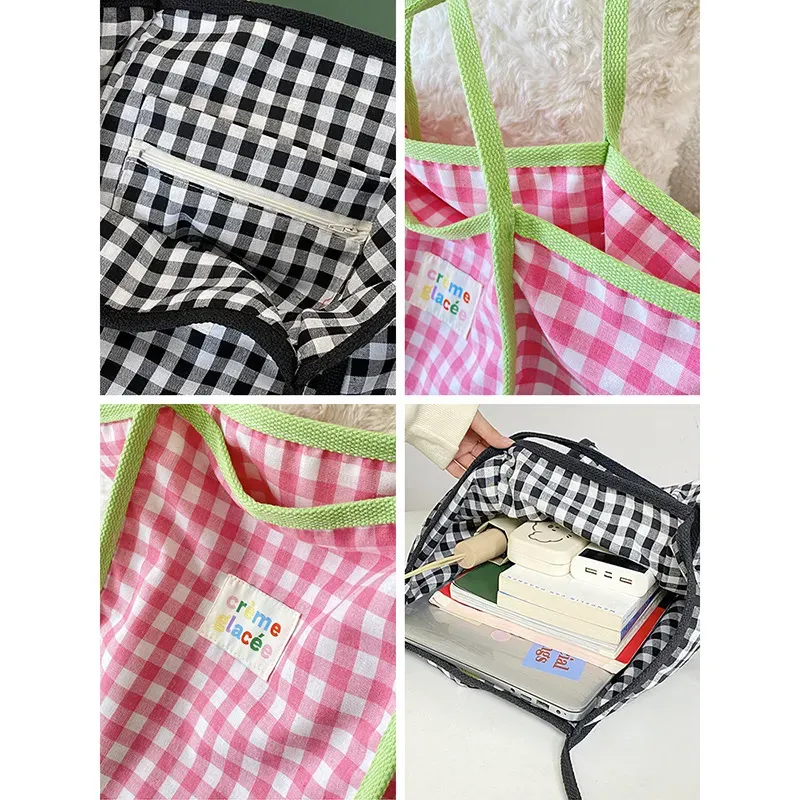 | Color | Blue Check (Zip Inside), Pink Check (Zippered Interior), Red Check (Zippered Interior), Black Check (Zippered Interior) |
