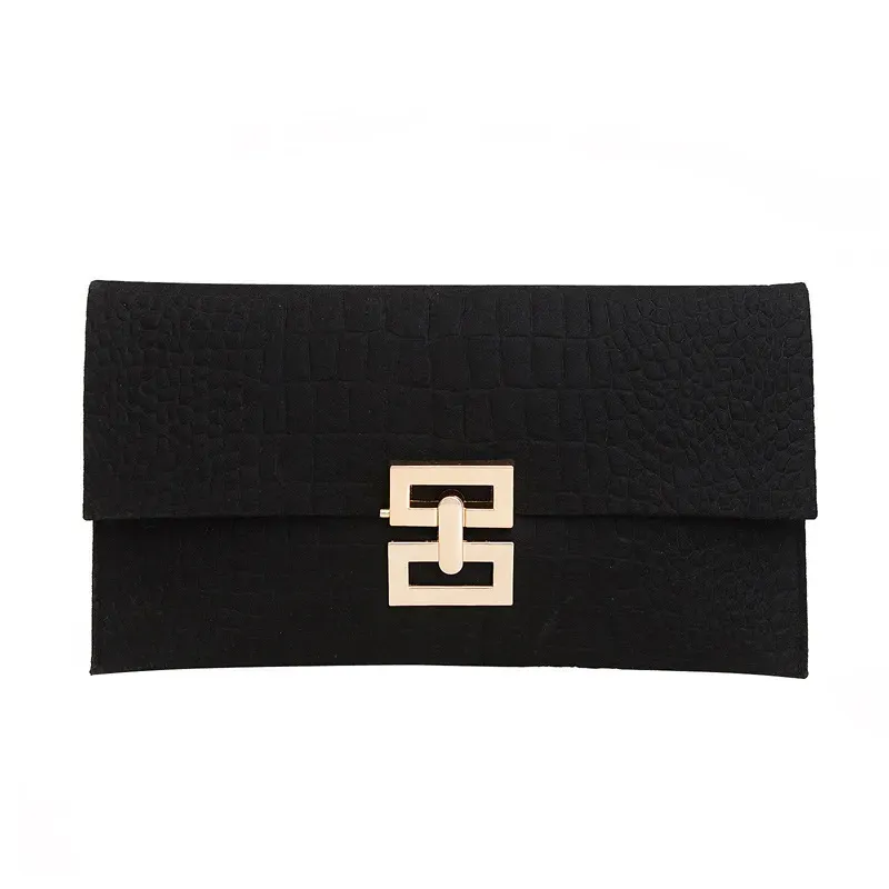 Women Simple Solid Color Flap Metal Latch Large Capacity Rectangular Purses