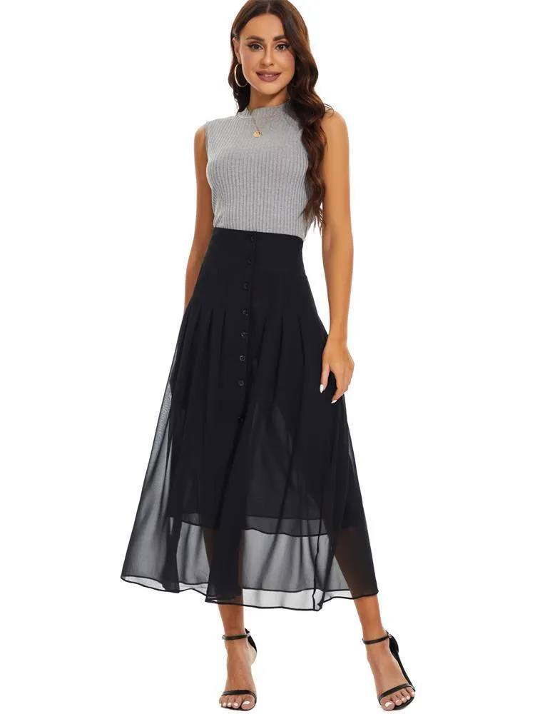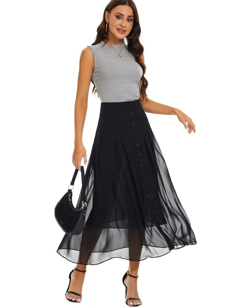 Women Summer Temperament High Waist Split Long Chiffon Skirt – Premium Fashion Apparel for Modern Life